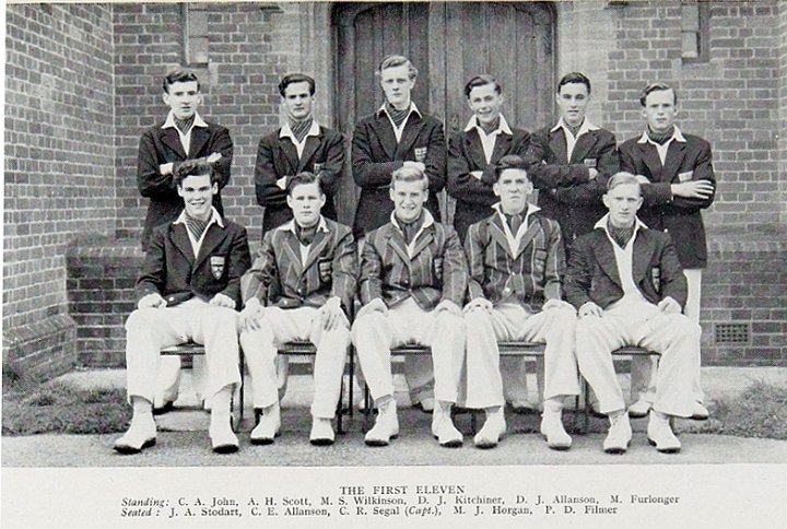 1957 First X1 Standing; John, Scott, Wilkinson, Kitchener, Allanson D, Furlonger Seated' Stodart, Allanson C, Segal, Horgan, Filmer